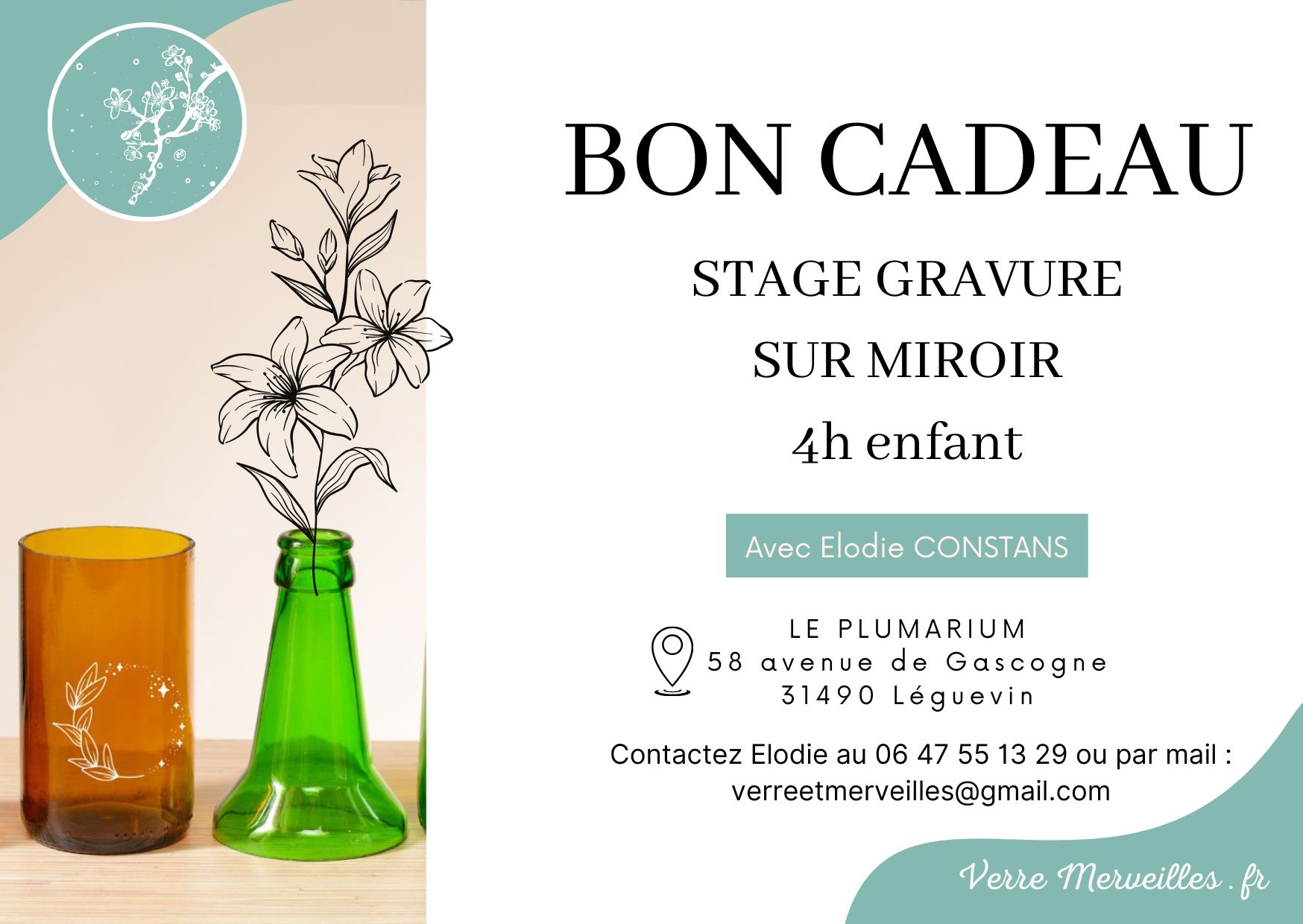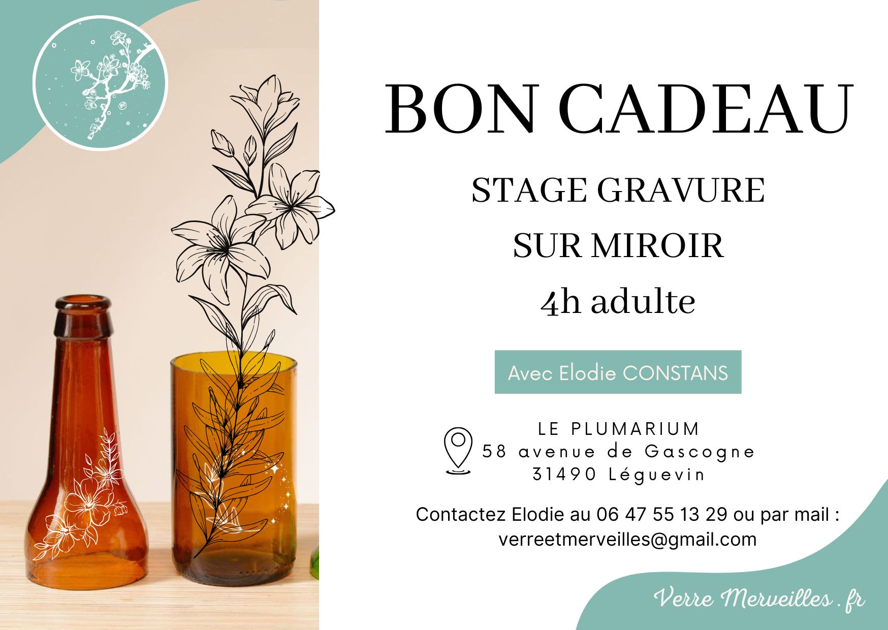Ou alors une session de 4h (14h-18h) pour graver sur un miroir (40×40 cm) (autre taille et forme : contacter Elodie)