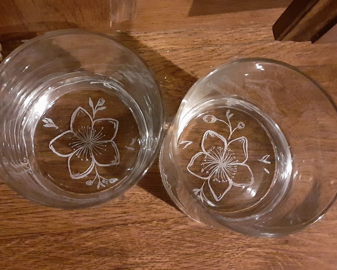 La gravure est un procédé de décor du verre à froid par enlèvement de matière. Elodie vous propose deux techniques :